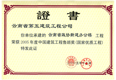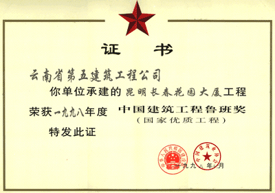 機(jī)場(chǎng)魯班獎(jiǎng)狀